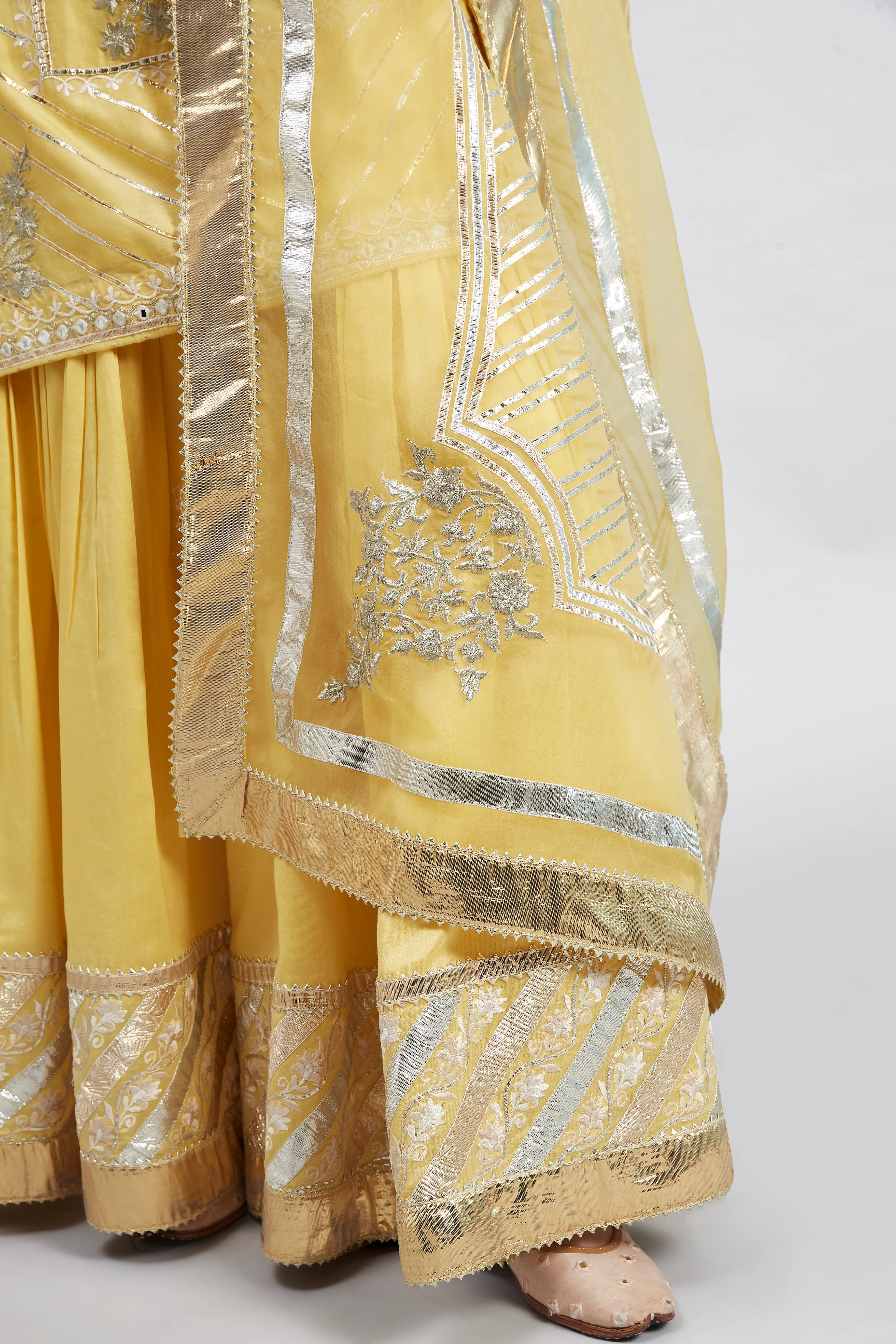 Eliza - Daffodil Yellow Chanderi Silk Kurta and Garara Set with Organza dupatta