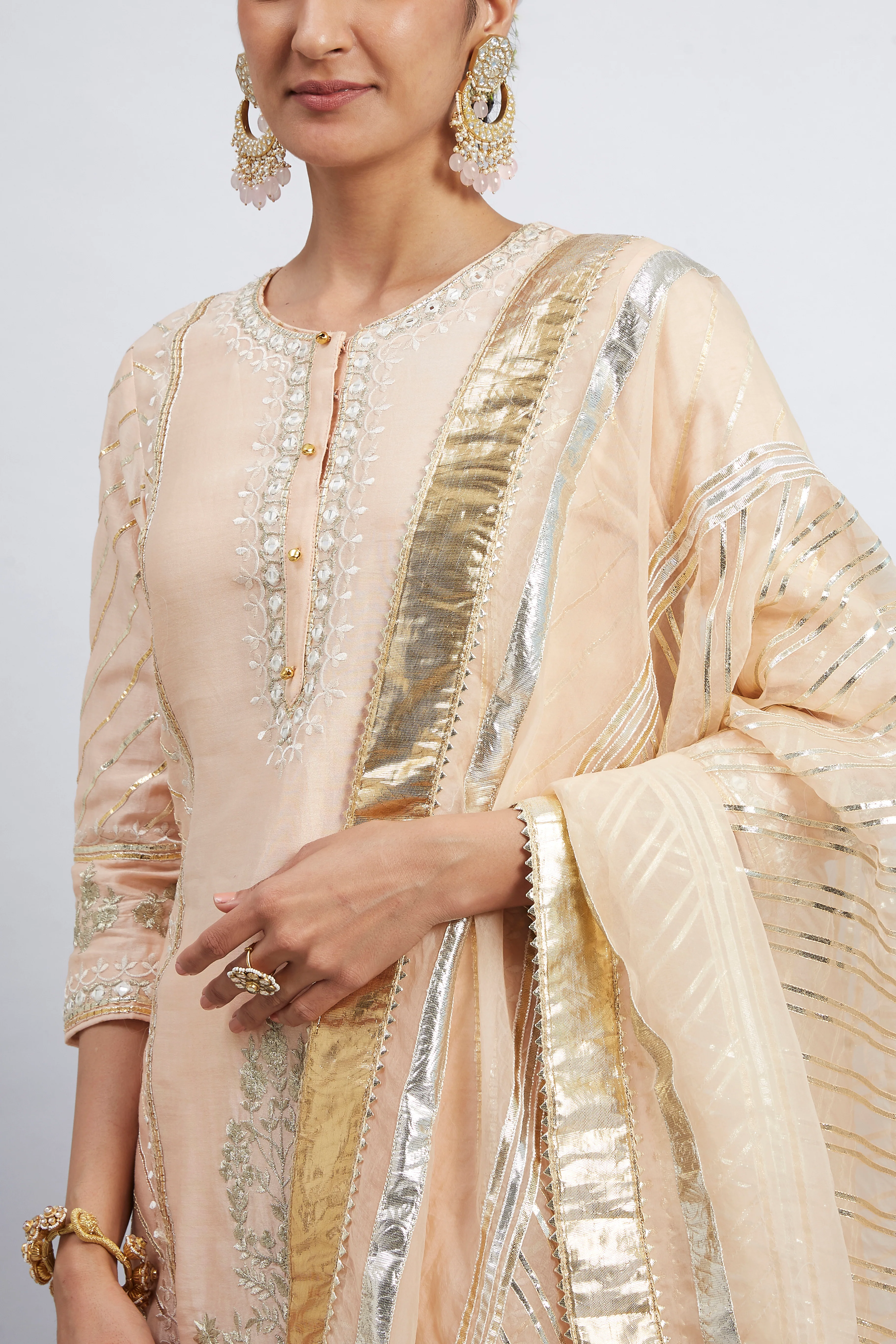 Eliza - Peach Chanderi Silk Kurta and Garara Set with Organza dupatta