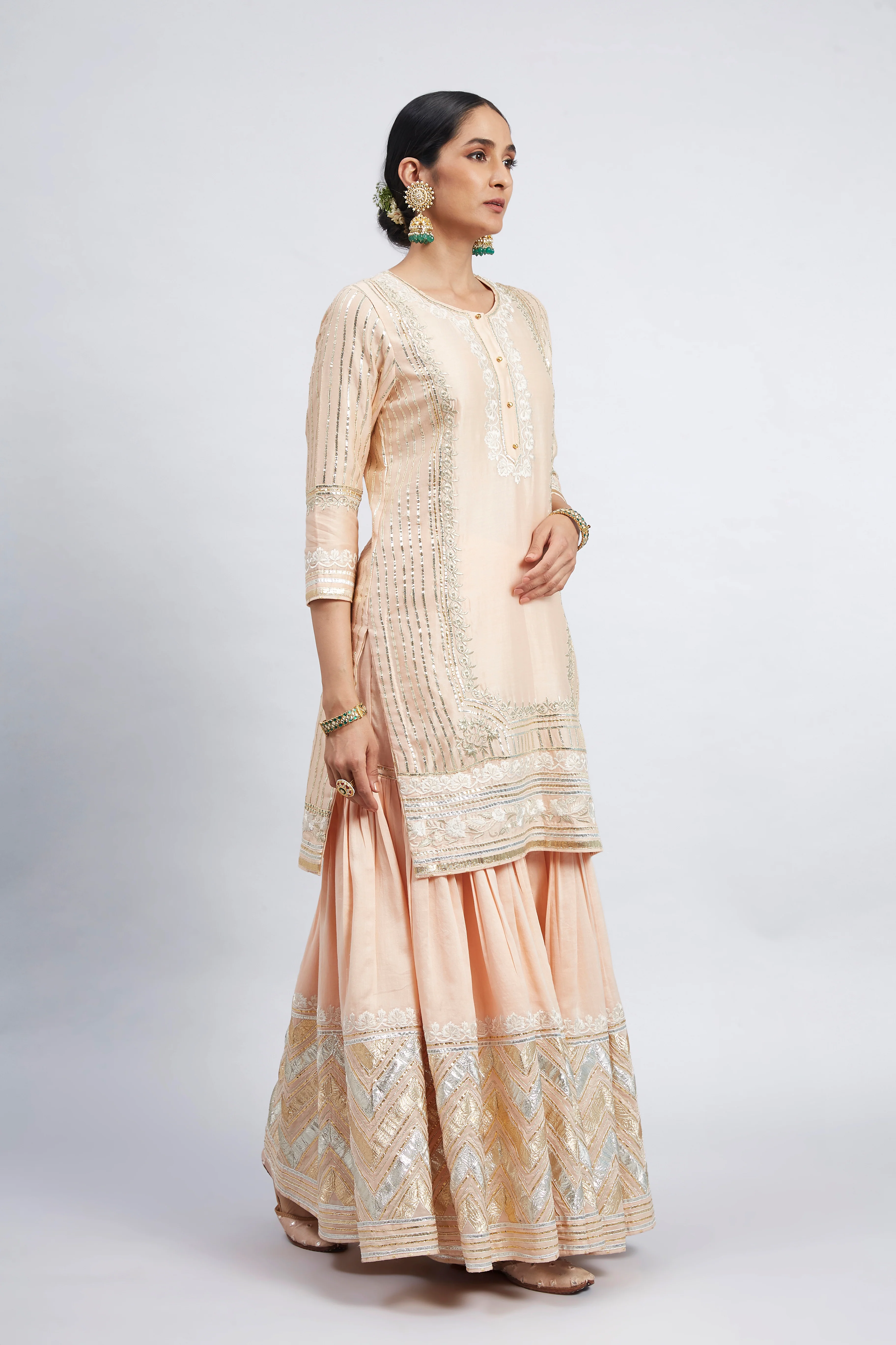 Erina - Peach Chanderi Silk Kurta and Garara Set
