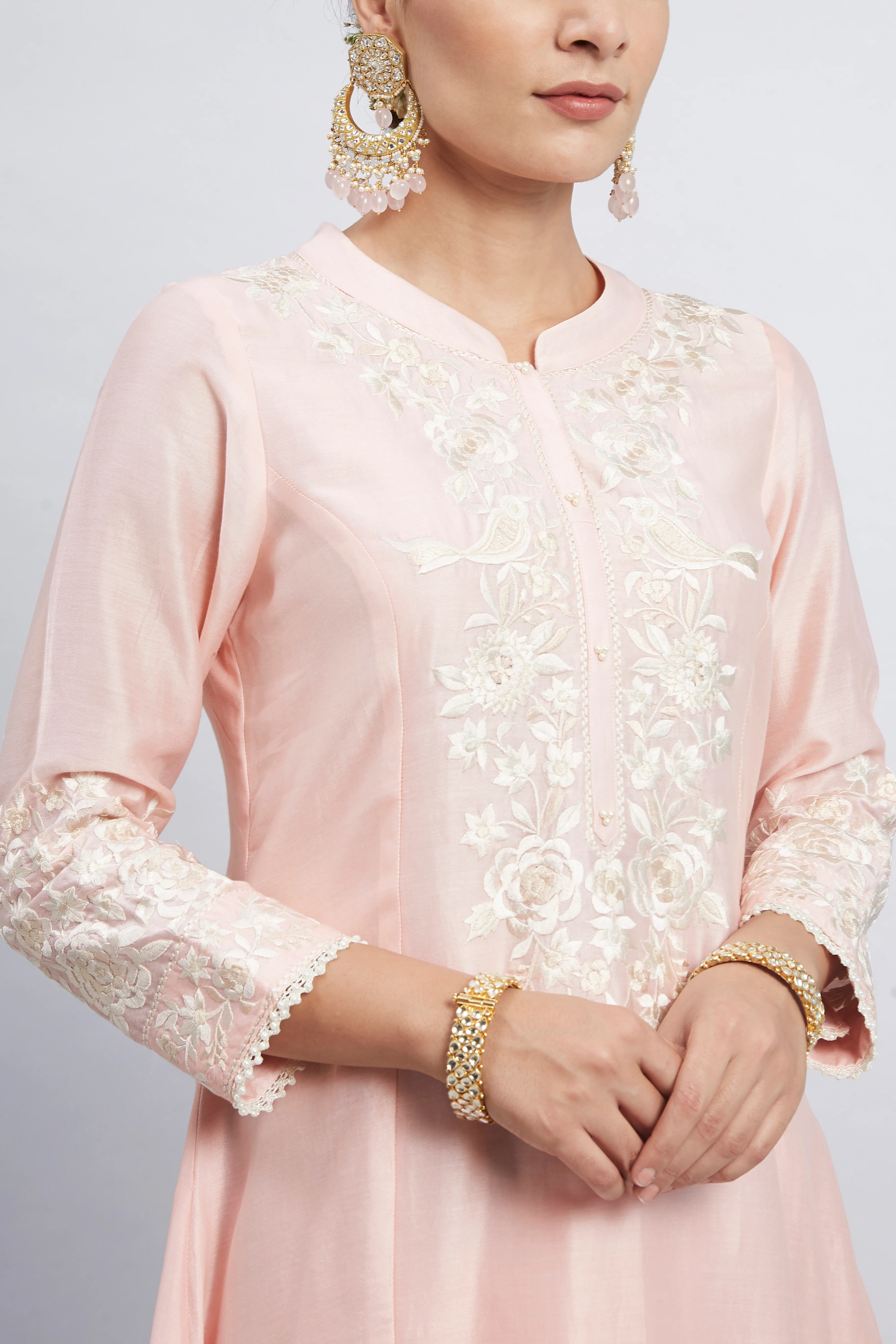 Kaina- Soft Pink Pure chanderi silk Parsi-gara embroidered ensemble