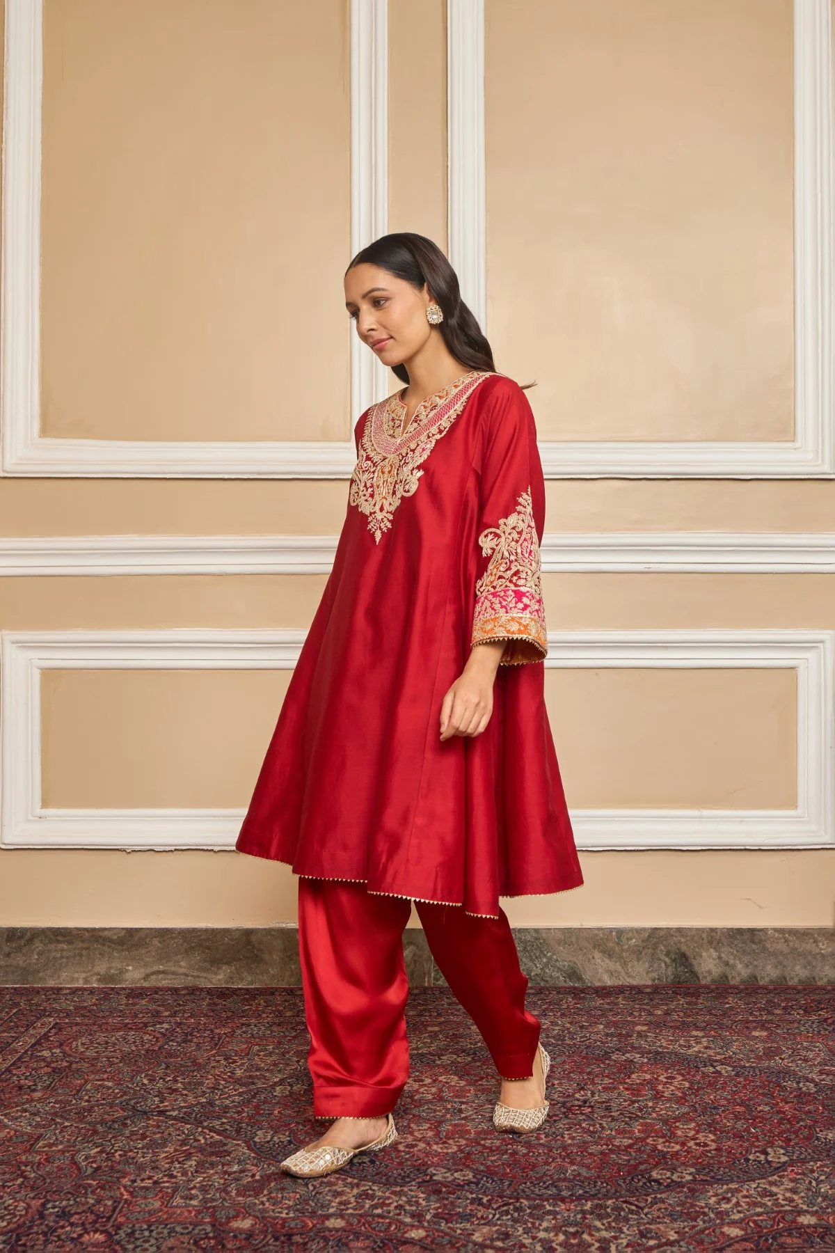 MEHRISH - DEEP RED SHORT KALIDAAR CHOGA WITH SALWAR