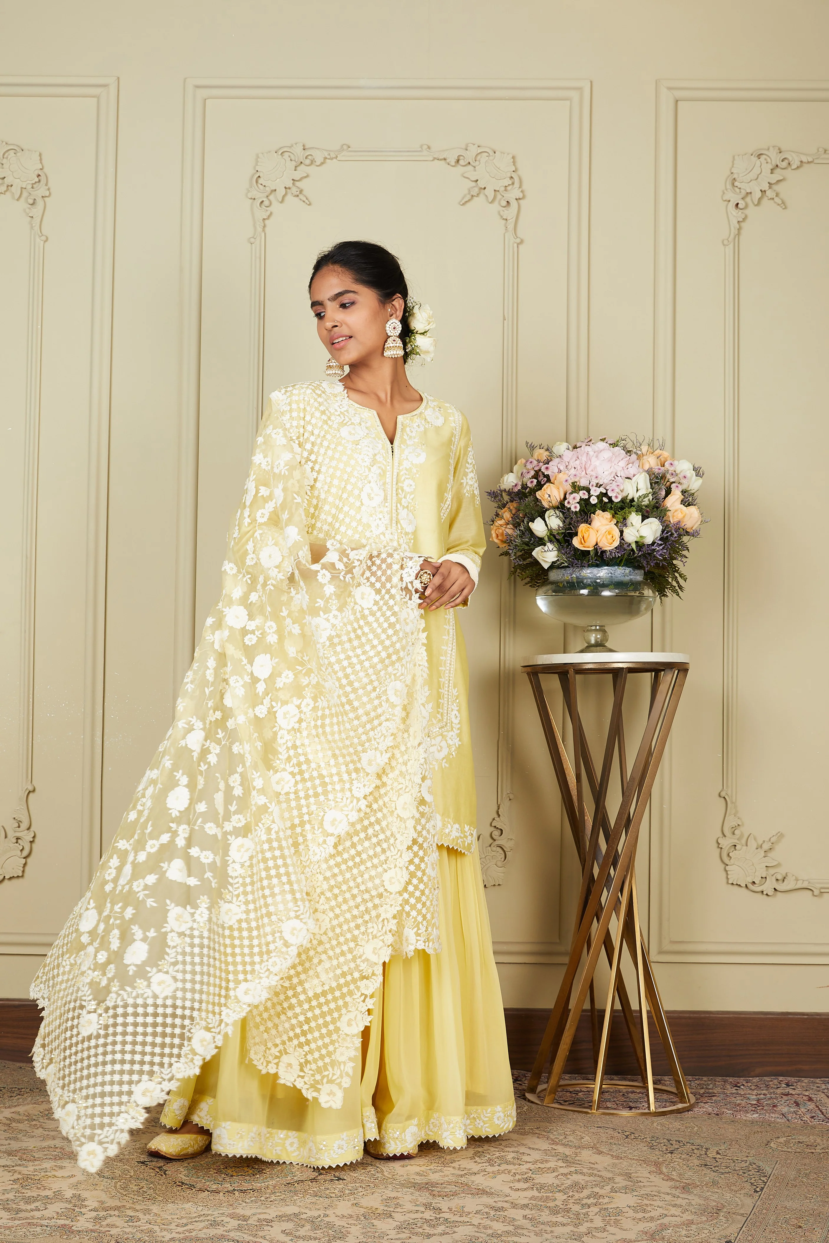 Nargis - Lemon Yellow Short kurta with garara and dupatta