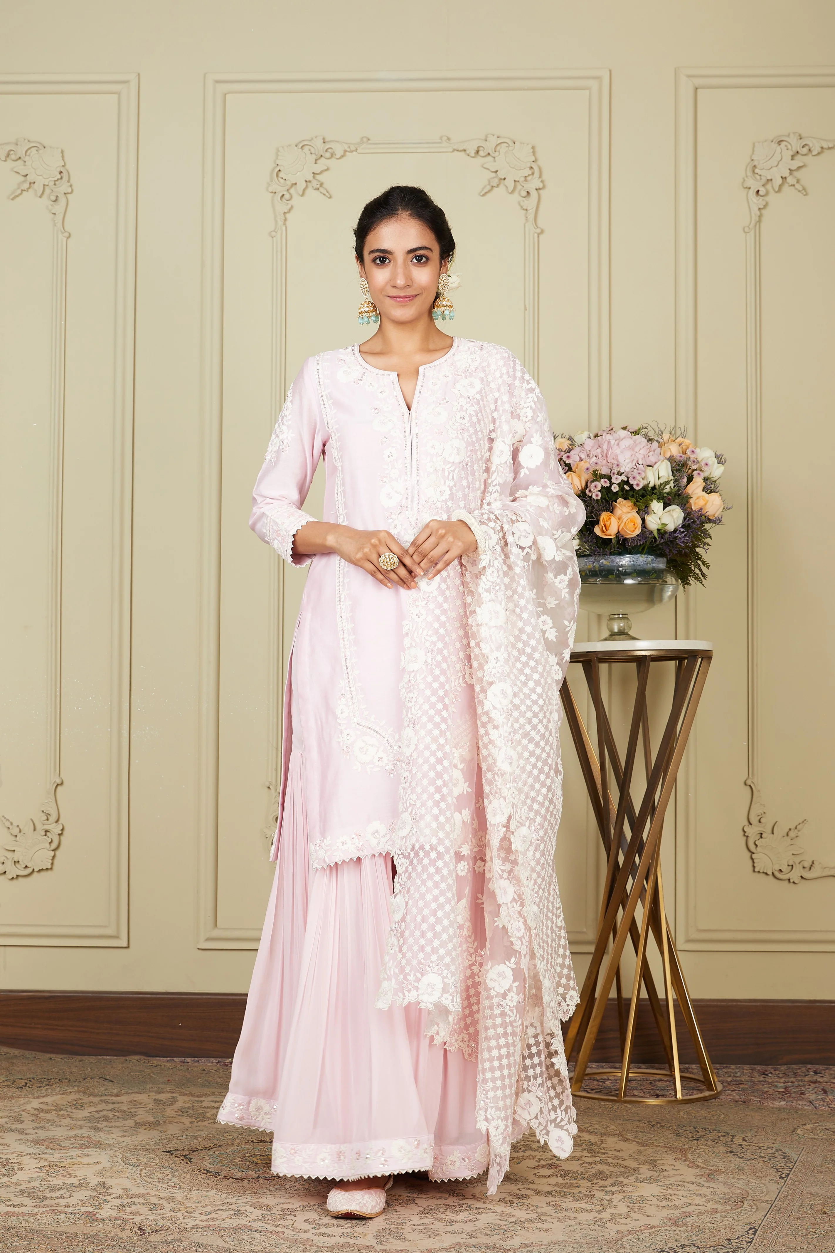 Nargis - Pearl Blush Short kurta with garara and dupatta