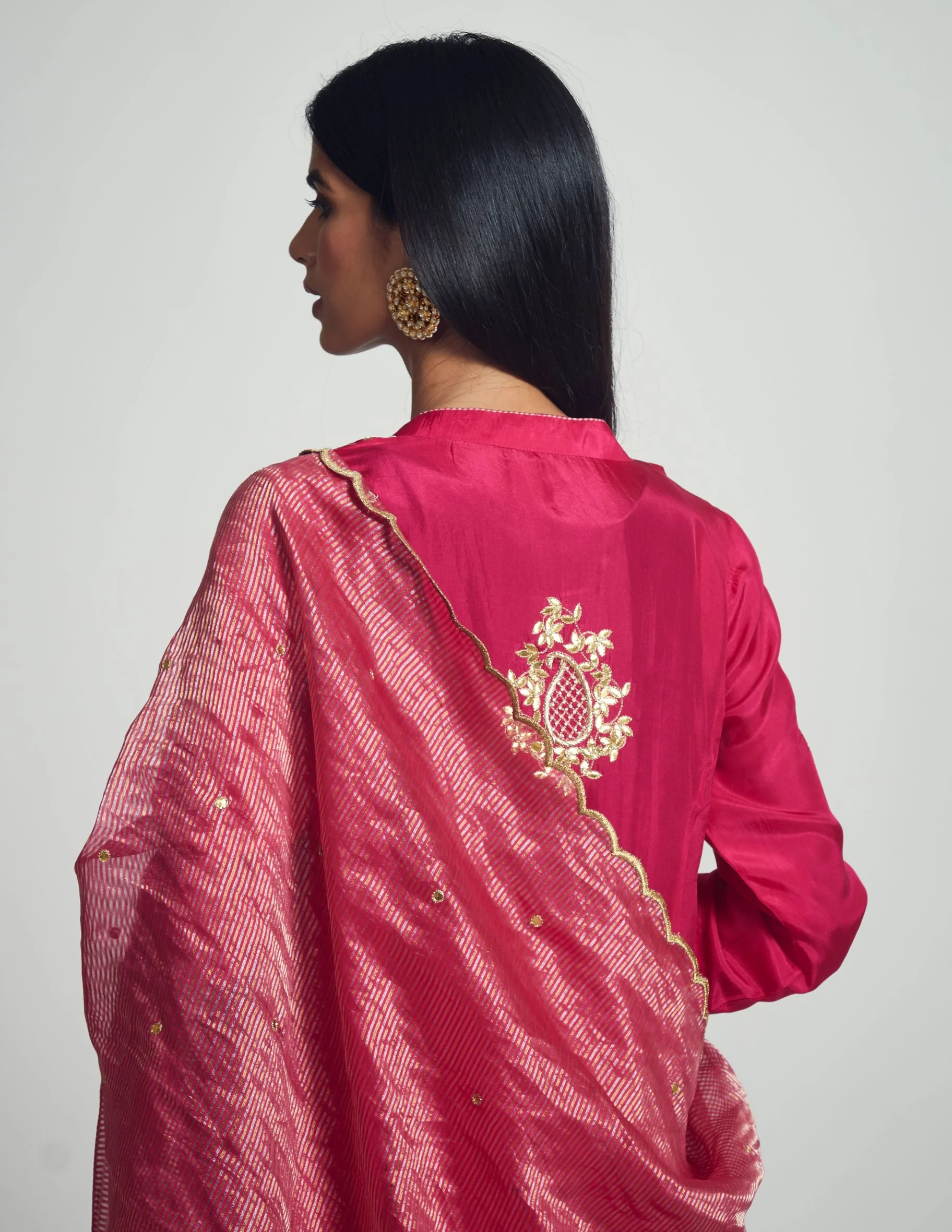 Nazish- Rani Hotpink Habutai silk Gota Patti embroidered kurta with salwar and dupatta
