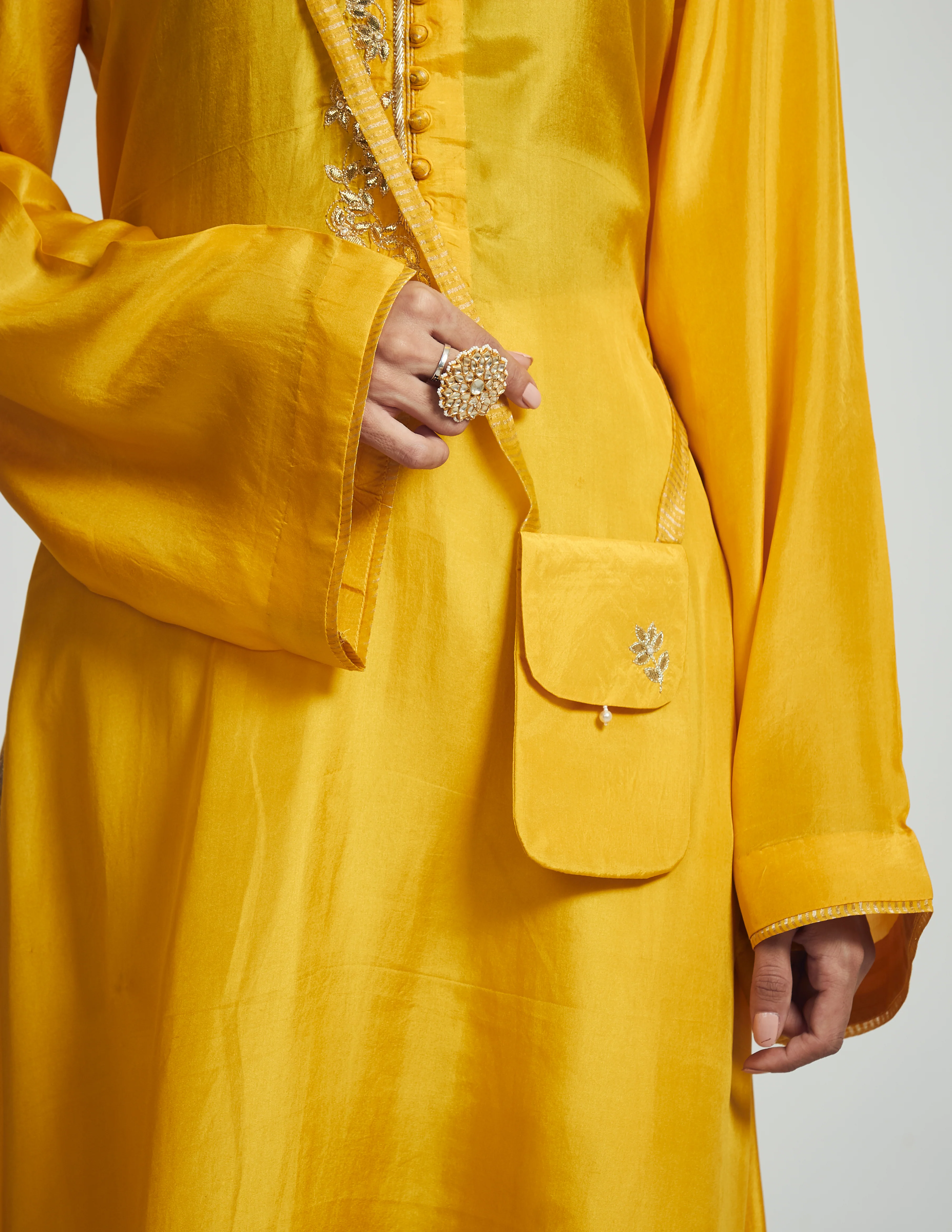 Nyasia- Happy Mustard Habutai silk Gota patti embroidered choga