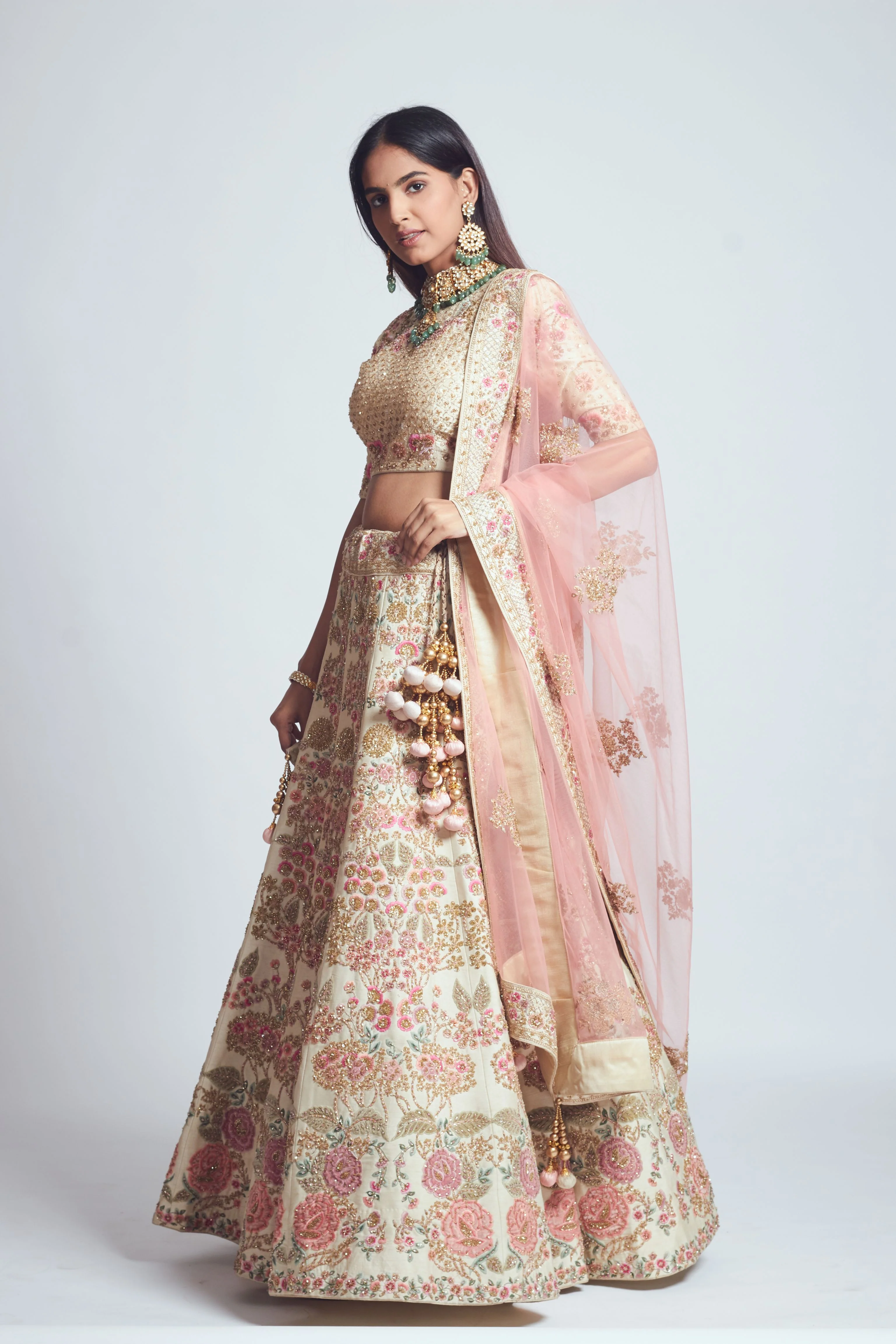 Parinaaz- Daisy Ivory & Blush Pink parsi & dabka zardozi embroidered lehenga