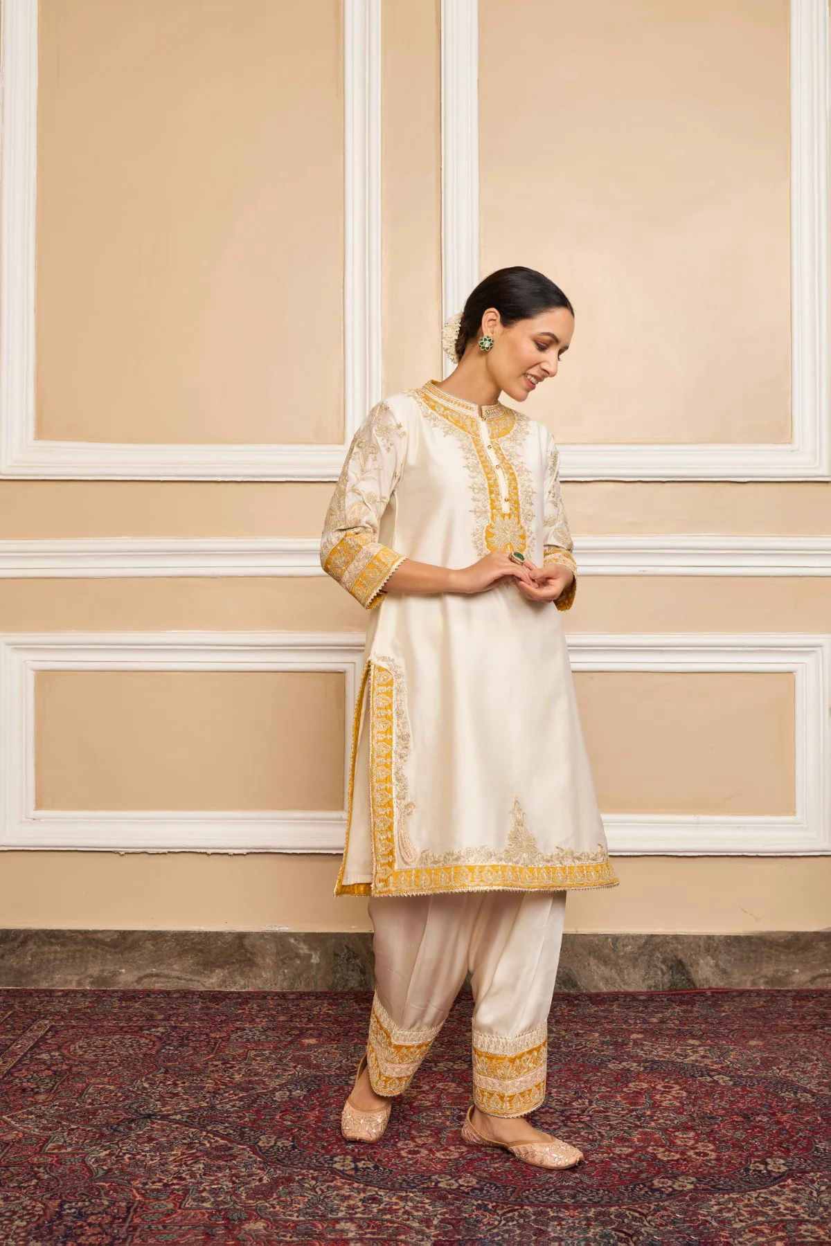RESHAM - DAISY IVORY SHORT KURTA WITH SALWAR AND DUPATTA