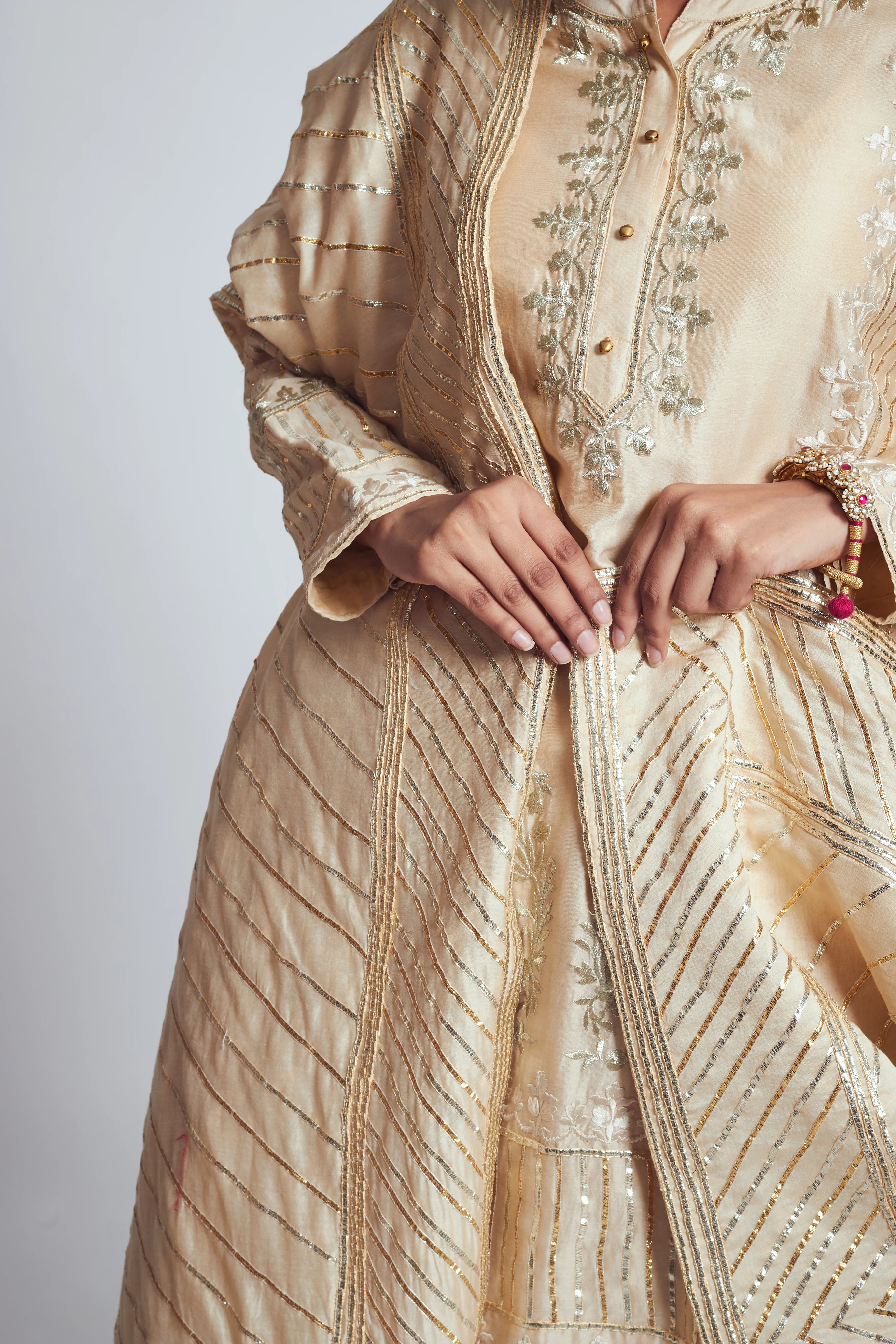 Saima- Soft beige Chanderi silk embroidered ensemble