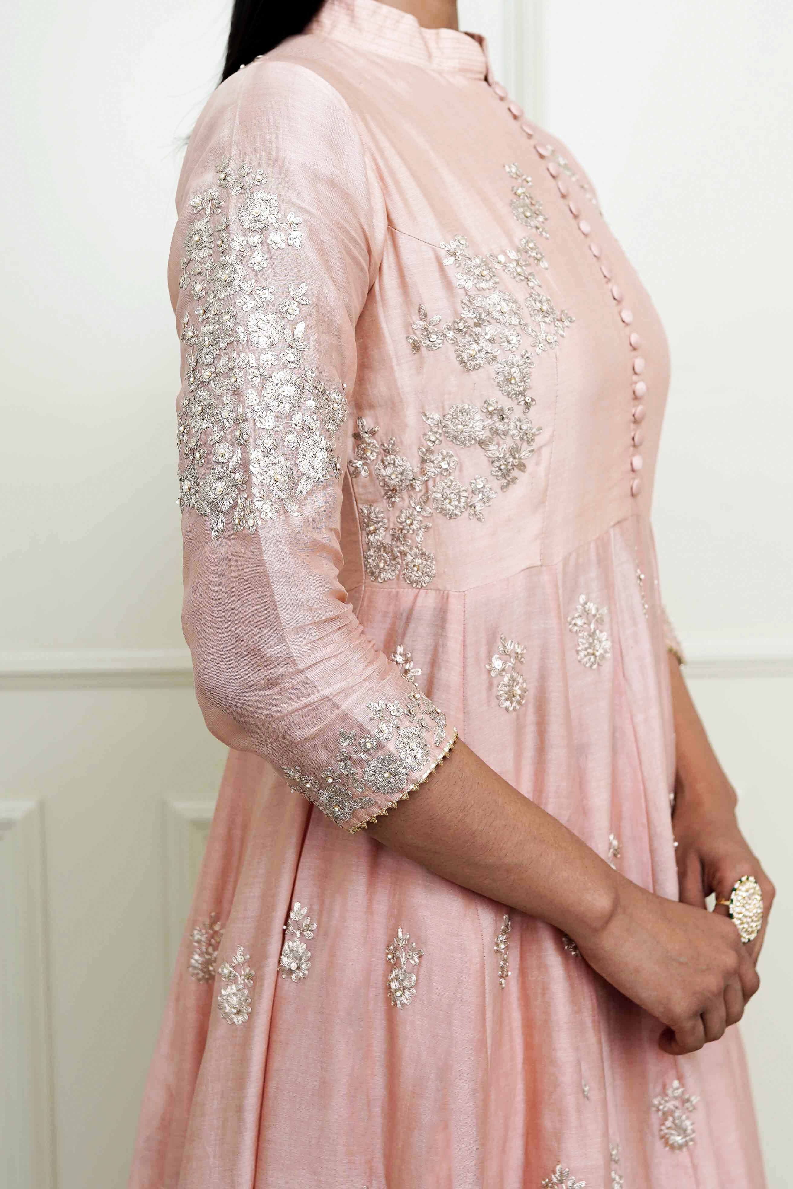 Taveshi-Pearl Pink Pearl Embroidered Anarkali Set